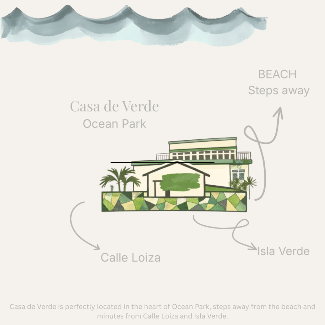 By car: Take PR-26 from the airport toward San Juan, follow signs to Condado/Ocean Park, then turn onto McLeary Ave. Casa de Verde is at 2061 McLeary Ave, on a corner near Calle Loíza.
